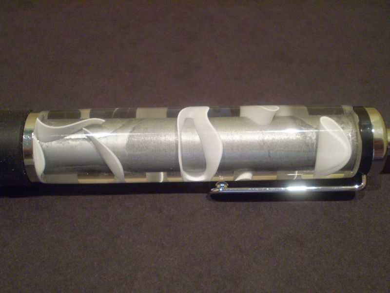 After much trouble and a few kits and blanks I finally succeeded in creating this pen. Lucite is a very touchy material, but in my opinion makes some of the coolest pens around. Reverse painted metallic silver. Hope you guys like it as much as me. All comments/critiques welcome.