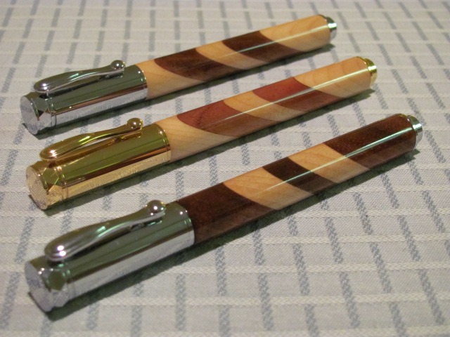 These 3 I did in December.I'm working on a pair of big sketch pencils now,hope they turn out.They are segmented differently,but have the same woods.Hope they turn out!