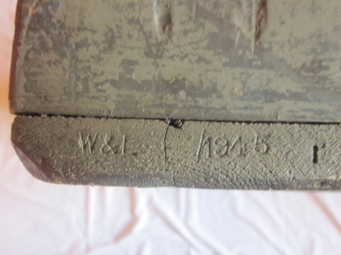The Timber was salvaged from an Engineers toolbox and is dated 1945 , during the building of the ship and was on board until its decommission in 1979 and subsequent Scrapping in 1980.