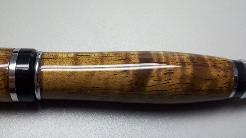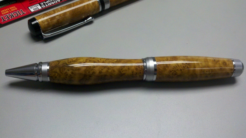 last is brown mallee burl from exotic blanks. This was my first pen I used my homeshaped delrin bushings on, and learned that the bushings should still be close to the finish size of your pen. I had them oversized, since i wouldnt need them for shaping, and that prevented me from putting pressure by the parts where the blank will eventually meet the kit, resulting in a few tiny air bubbles. Probably cant see them in the picture but ive since fixed the bushings, now my CA finish is much more stress free/ fool proof.