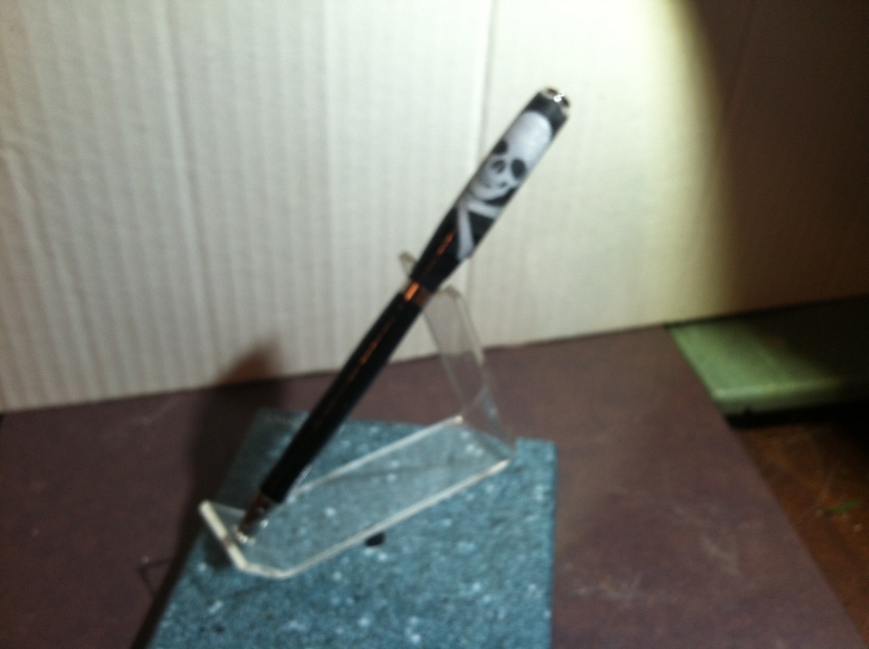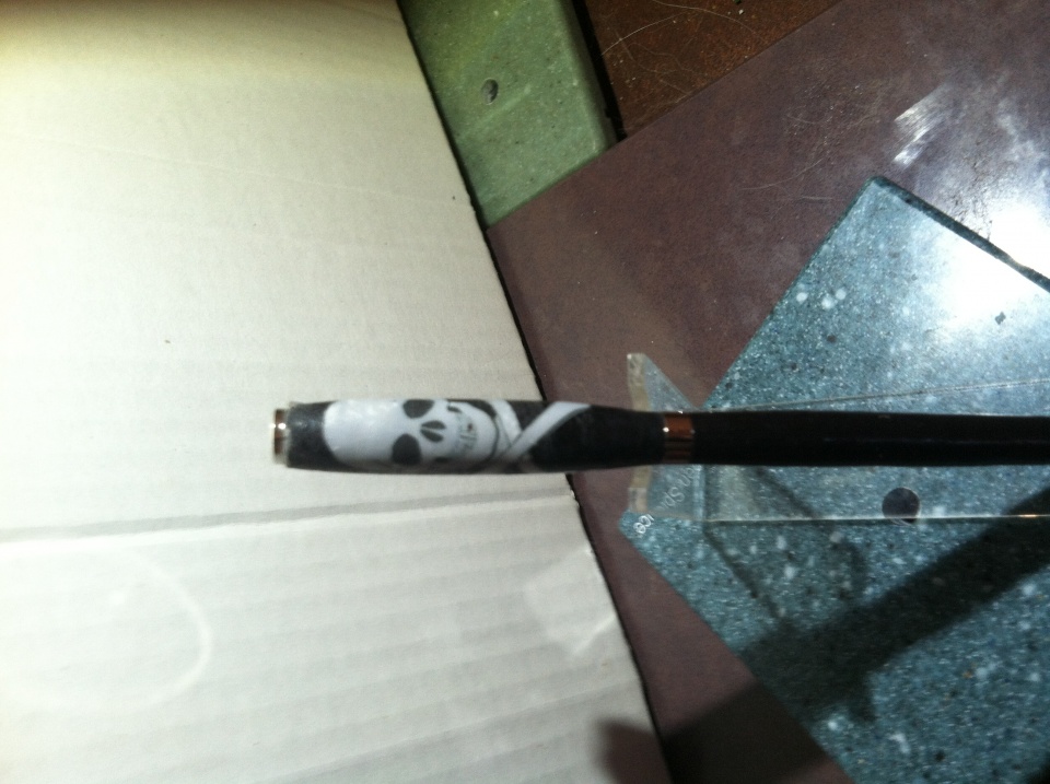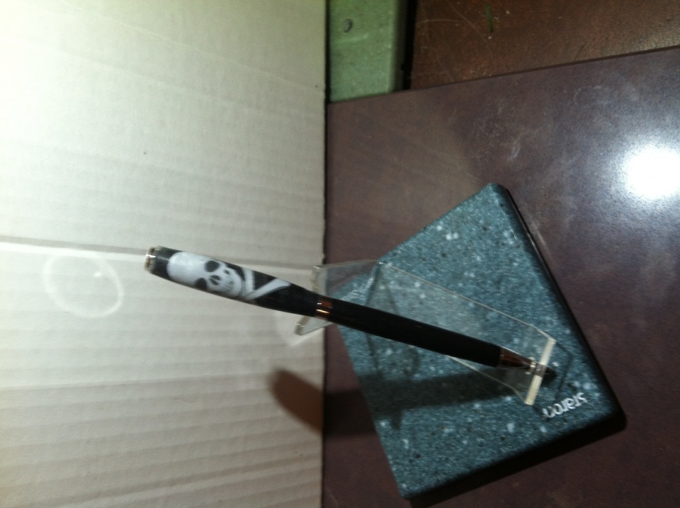 Took a quick iphone picture before I turned it loose. Black tube in acrylic with skull decal. Sorry for the sideways shoots. Computer had some error message about picture properties to save it.