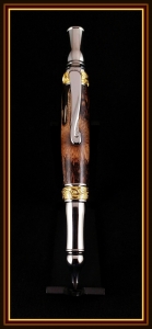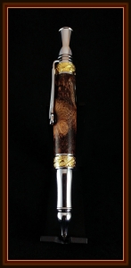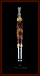 The hairy Banksia pod blanks on this Nouveau Sceptre and Majestic Letter Opener were "turned" using a flap disc. Information on the pods and how to best turn them are available in this thread: http://www.penturners.org/forum/f217/dealing-bankasia-pods-115052/ posted by George Valentine (Robutacion). George provided four of these lovely blanks as the first place prize for this summer's ball point pen turning contest. You can buy them at his store: http://www.georges-bits-of-timber.com/. I must be lucky because I didn't follow any of George's advice for preparing the blanks. Maybe because I use high speed acryllic drill bits on my drill press. I regret not painting the inside of the blanks or the tubes because you can glimpse the brass through a few small voids. I've seen another turner paint the tubes different colors like red and cream and it really adds another dimension to the pen.