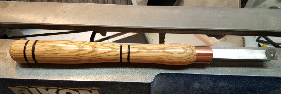 I bought a Carbide cutter with a 18mm round cutter Brian Nikitas. I got around to turning a handle before I went to work today. I still need to add another coat of Pens Plus and part it off. I should have it finished tomorrow. All C & C welcome. Thanks for looking.