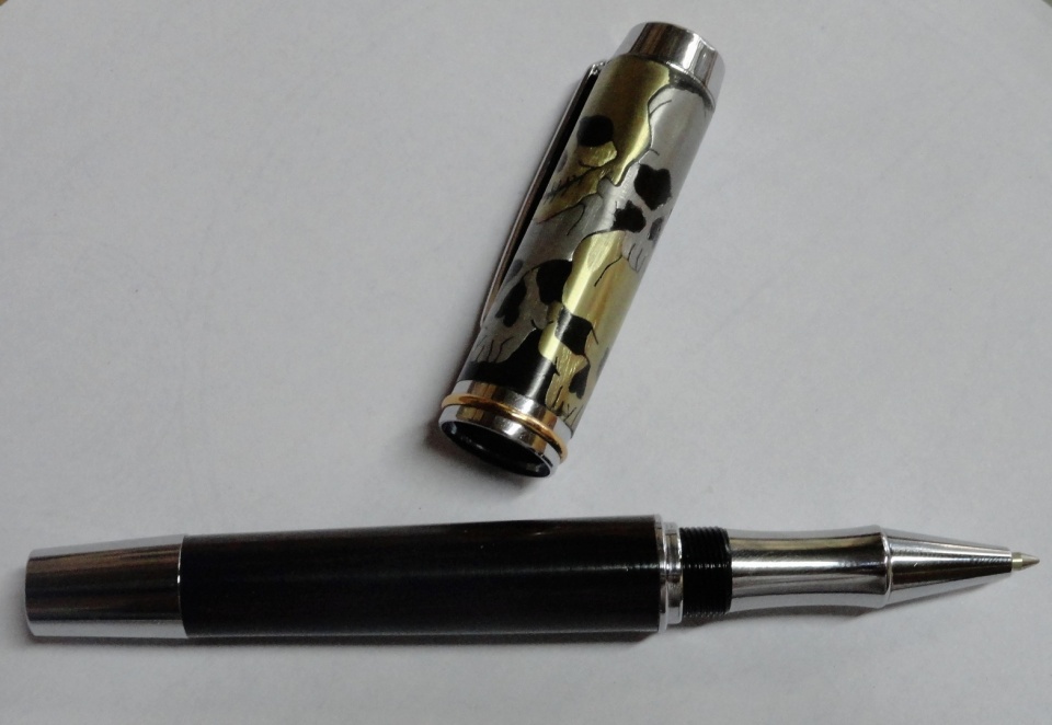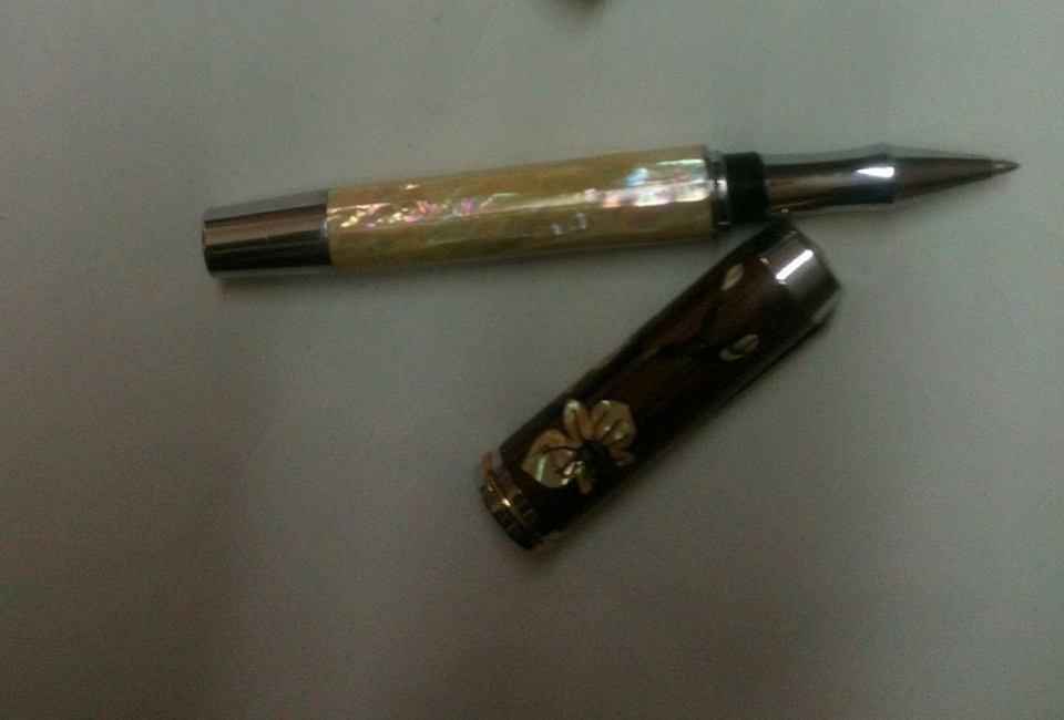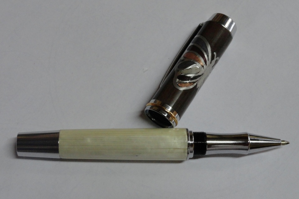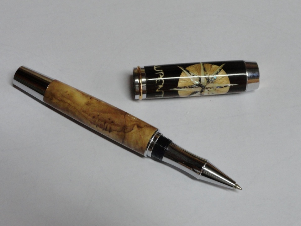 4)wind rose materials olive,ebony,mother of pearl,abalone (a custom made pen with the name of the client on it).