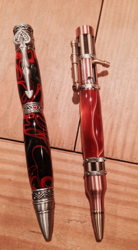 The El Grande is a great large pen. Total weight is dependent upon the material used - Truestone, M3 and some woods like cocobolo or Osage orange will give you a fairly hefty pen. Biggest gripe I have with the El Grande is the visible plastic at the end and center.
