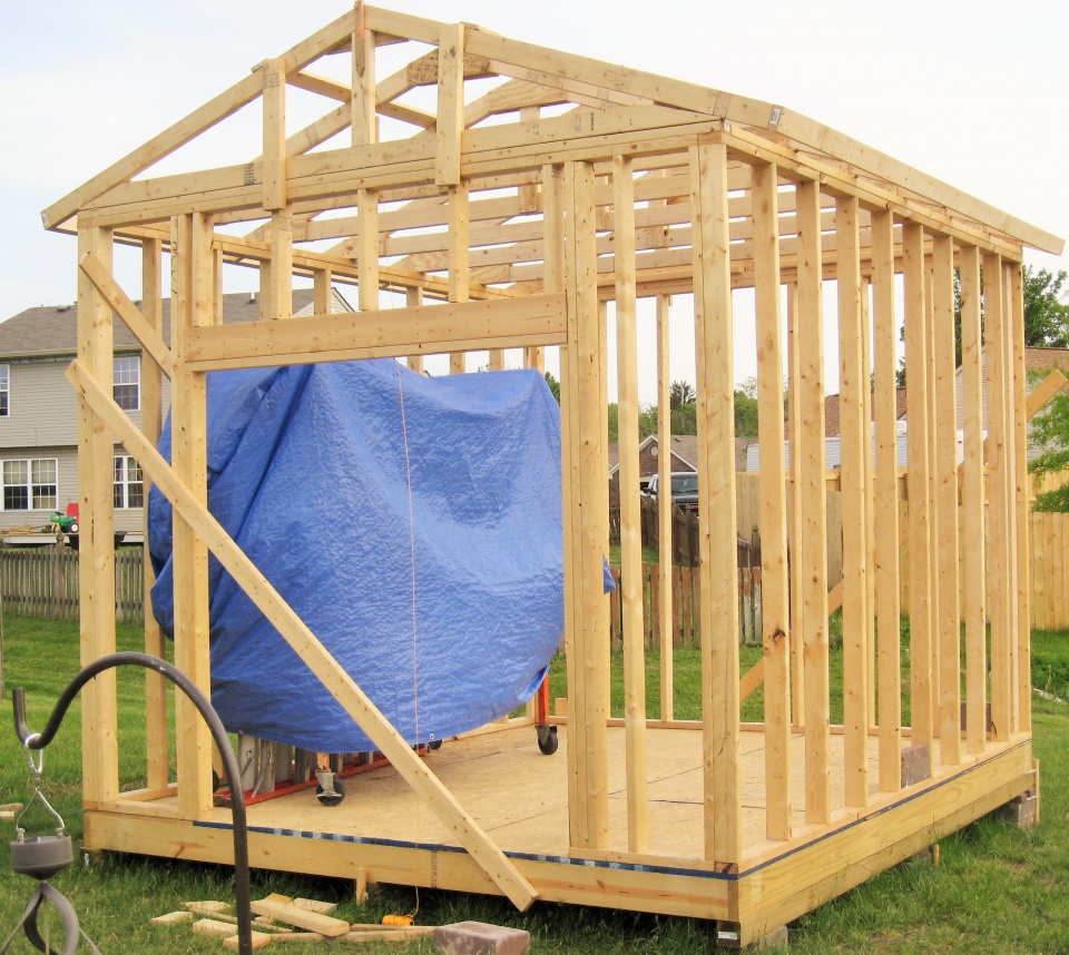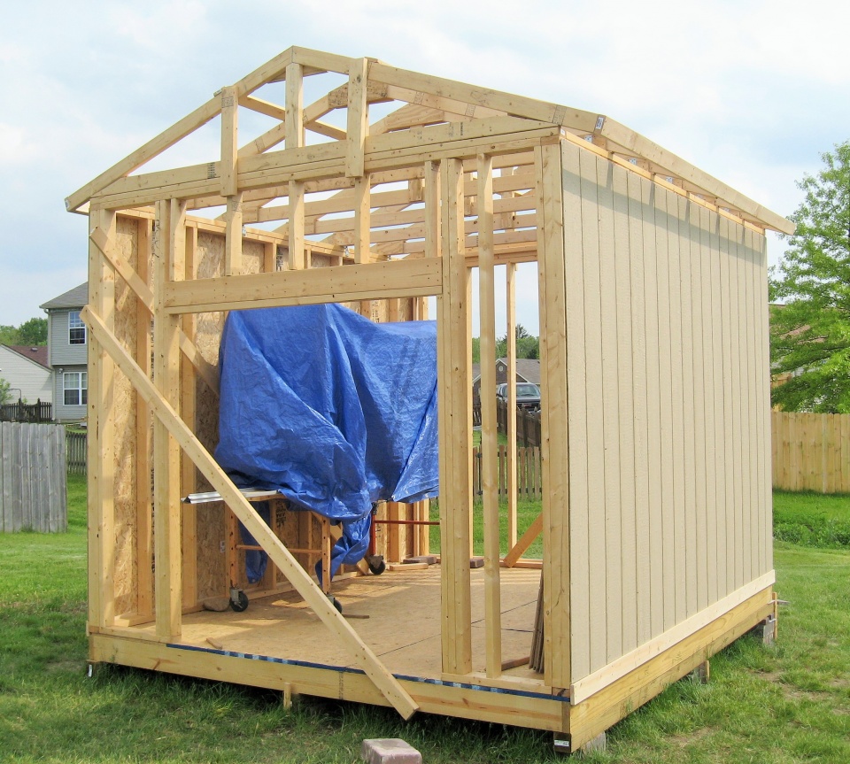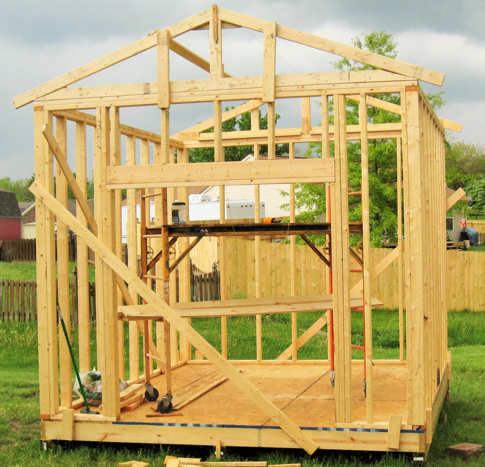 Chuck; If you are having a lot of rain, I would tarp the roof or use clear plastic to seal off any open areas, top, roof, and sides. This will give you light to work, keep the wind and rain out, and keep your lumber dry and warp free. Trades and finishing contractors don't like to work on structures unless they are weather tight. Sooner or later you are going the have to install a wind and vaper barrier anyway, be it Tywrap or plastic. Don't forget, when you trench to run your power out there to include the cable TV, telephone, and intercom to the house wires also. And if you have time, install a rope and pully system so you can have lunch and a cold beer delivered without having to stop work and run to the house. As for the bathroom setup, a 5 gallon pail with an old toilet seat and some handy wipes should work. Don't forget the air freshner !!! I have a few other suggestions for you, but I don't think you want to start over, so I will keep an eye on your progress and see if I can save you some unforseen problems later on. Jim S