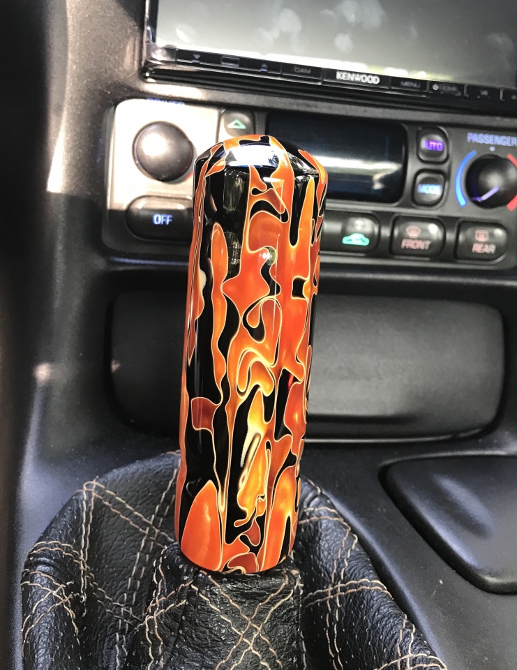 For my Corvette and cars I had for years previous, I turned custom shift knobs. A few years ago I discovered 'acrylester' and other acrylic materials suitable for turning and just for the heck of it, I made a number of shift knobs, which I switch out on the Corvette and have made a few for people who have seen them.