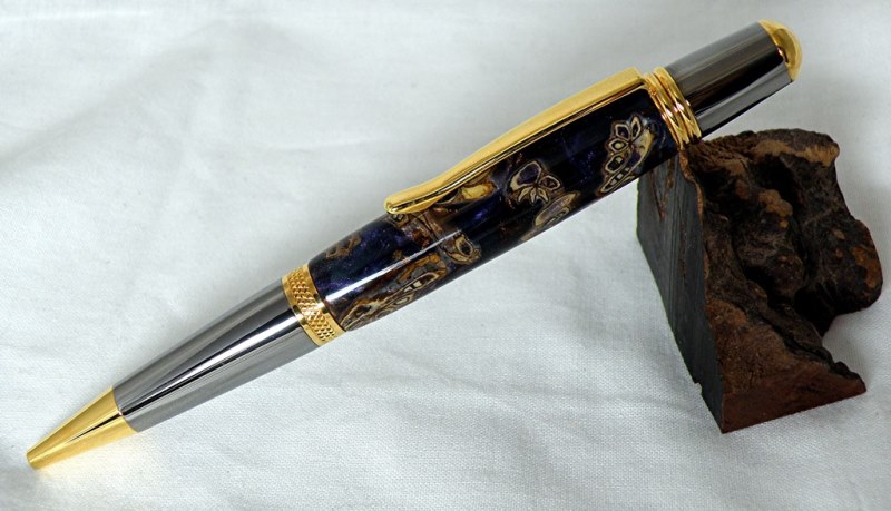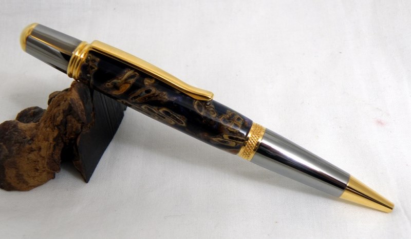 The second pen is made from twisty pods in purple and gray Alumilite. I haven't seen these before and am not sure what kind of tree or bush they come from. They had some voids on the inside that I filled with the same color mica in epoxy.