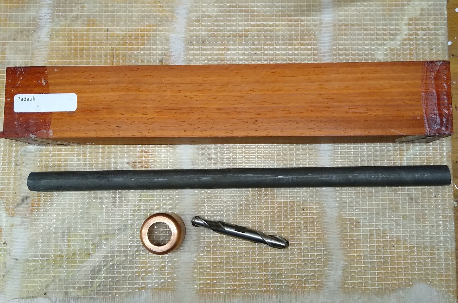 I saw a video by Dean's Woodworking while browsing youtube, and thought this might be a cool project. So I went to Home Depot, and picked up a 5/8" steel rod, a copper cap, and a set screw. I ordered the 3/8" Ball end mill from ebay. Luckily the rod fit through the headstock on the metal lathe, so it was easy drilling. No such luck with the handle, so it's off a little. I can live with it. The handle is Padauk, sanded to 600, and finished with Walnut Oil. I could have chosen a better finish. Overall length is 21" I'm working on a beading tool tomorrow. This one was fun. Here's a link to Dean's video.