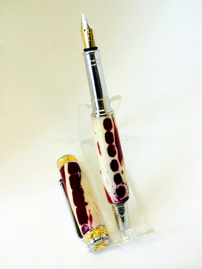 The pen looks great as presented and made... I just can't get beyond sticking an alligator jaw bone in my pocket. Let alone holding it in my hand :mad-tongue: Kind of like trying to write with a petrified chicken skull (Hmnnn............ I'll get back to you on that!.