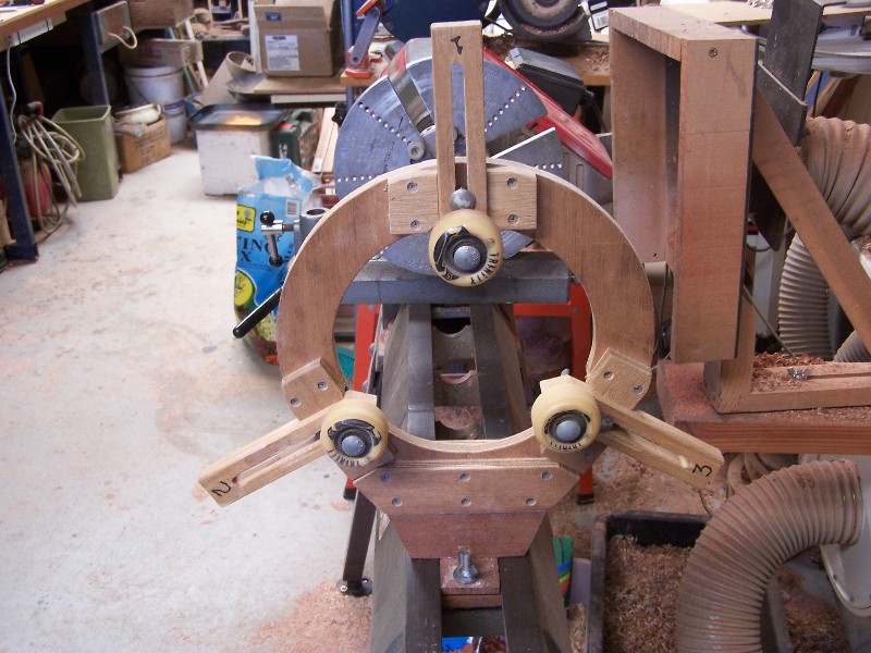 The tool is made from 3/4 plywood and is limited in size only by the swing of your lathe.