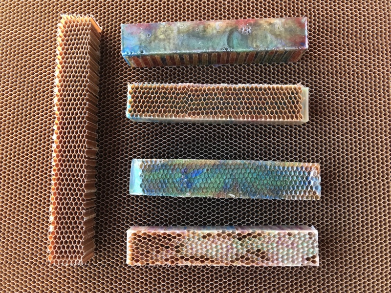 I drizzled the resin over the honeycomb in a silicone mold and stuck it in the pressure pot and impatiently waited until the next day.