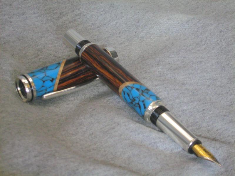 The sterling siver Navagator is King wood with turquoise acrylic and some curry maple inlay