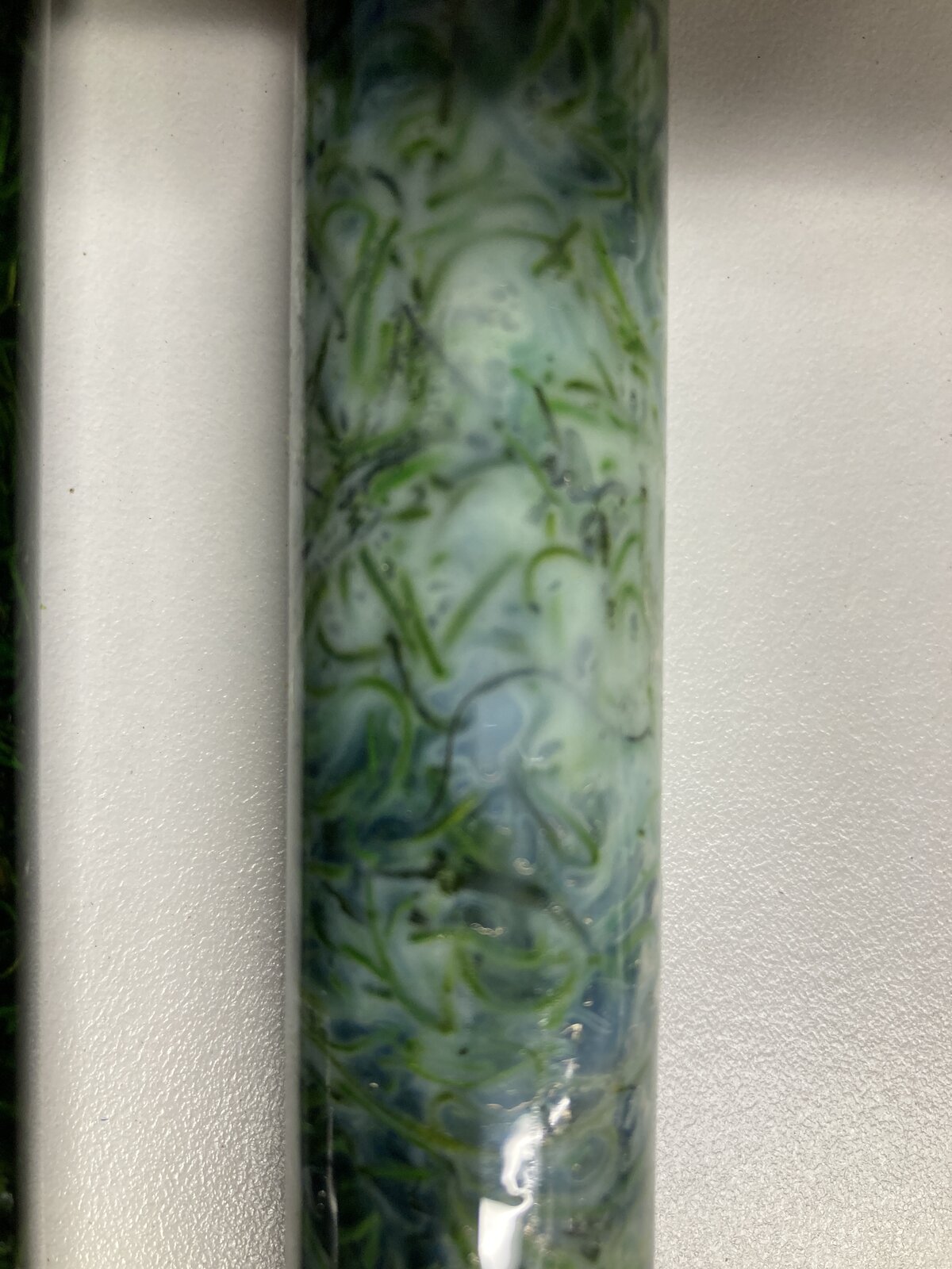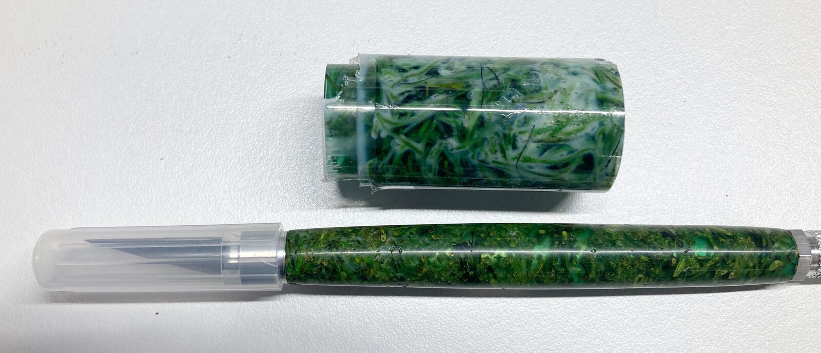 I saw an earlier post from an IAP member who made a pen using moss he picked up at Walmart. I thought that was pretty cool, so the next time I was at Walmart, I headed for the craft aisle, and sure enough, I saw some dried Spanish Moss. I bought a bag of the moss for about $3 and brought it home. The stuff seemed pretty dry - it crumbled in my hand - So I put some in a vertical casting tube and poured Alumilite clear slow over it and stuck it in the pressure pot overnight. When I got up in the morning, I opened the pressure pot, and was instantly disappointed - mostly in myself - for not taking the extra time to put the moss in a small oven to dry it thoroughly.