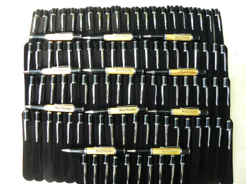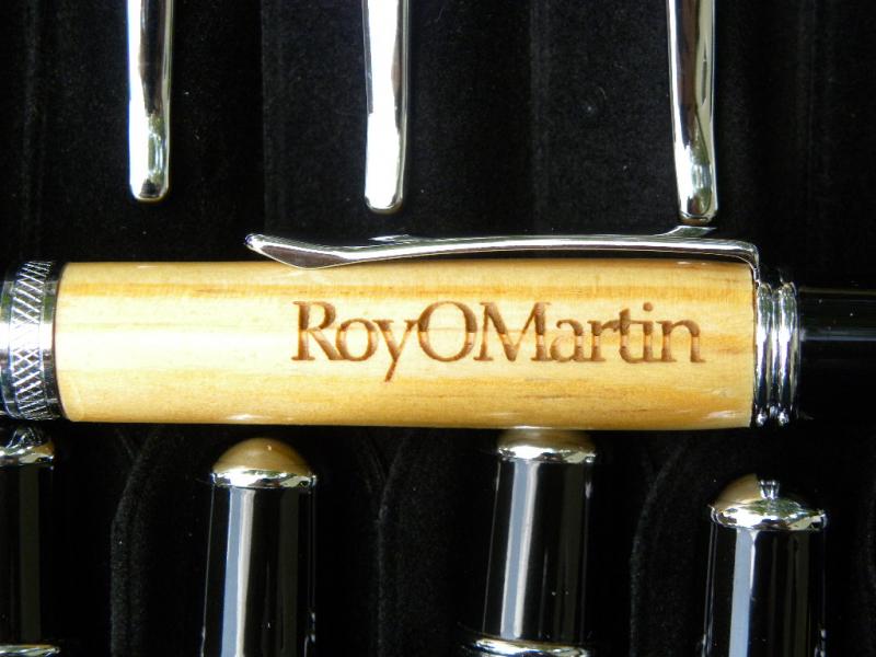 Last December I got a request from a local lumber company for 12 pens and boxes made from a variety of different woods, to be given to their board members. The boxes I made were the flip style and I had their logo engraved in them. They were delighted with the pens and the boxes and said they had something else in mind after the first of the year for me to consider. In March, they contacted me to make 100 pens from some of the wood from the Louisiana State Champion LobLolly Pine tree that had to be cut down. The tree was on their timber property. They wanted the company name engraved on the pens which was a challenge. Pine is not an easy wood to engrave. I delivered the pens today and again, they were very pleased with them. Hopefully, this will lead to some other orders.