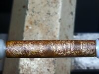You can see a tiny void to the left the epoxy couldn't flow into, which I filled with sanding dust. But the right is just epoxy exposing the tube. The other end is the same, only on the other side.
