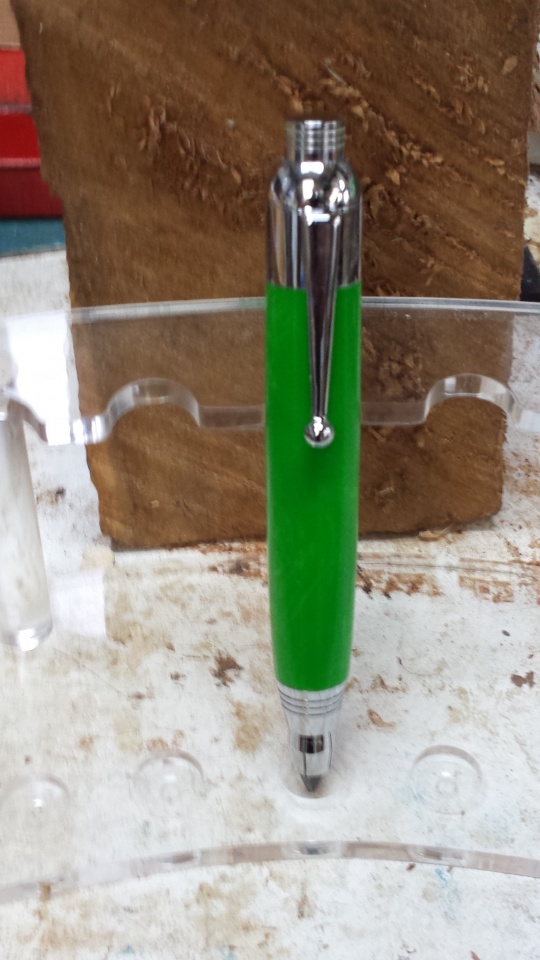 Well I added another pen to the stable, specifically a Sketch Pencil from Woodturningz, in Isotope Inlace Acrylester. It has been rudely commented on as the ugliest pencil in the universe. My retort is that the colour suits it's purpose as being difficult to mislay in my shed and no one else would like to acquire it, bar my daughter.