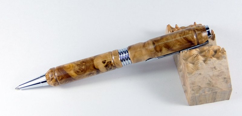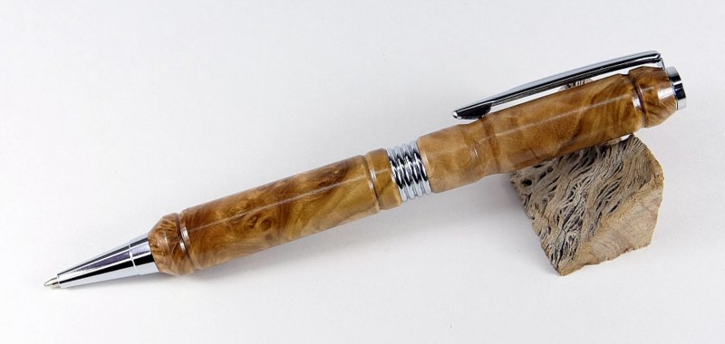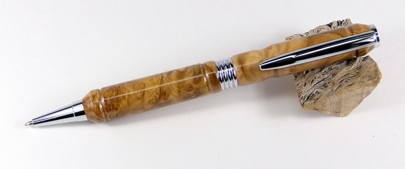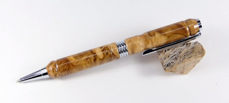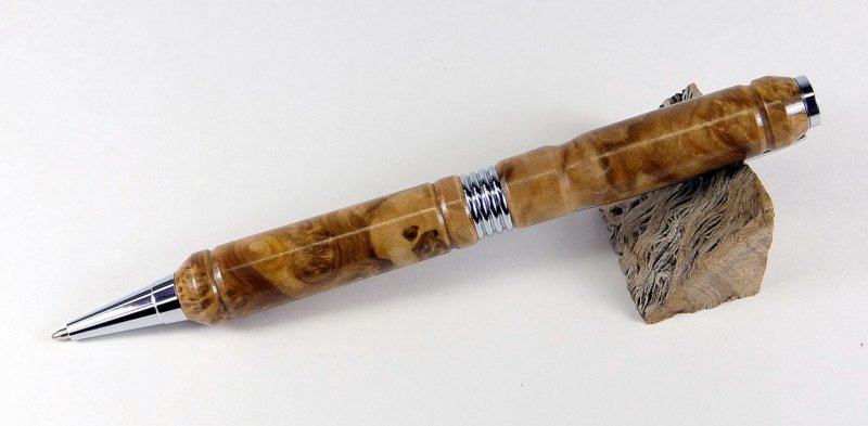 Morning here Les enclosing a pic of the latest Slimline I made I tend to use a Streamline centre band.One of my favourite Brown Mallee Burl blanks.