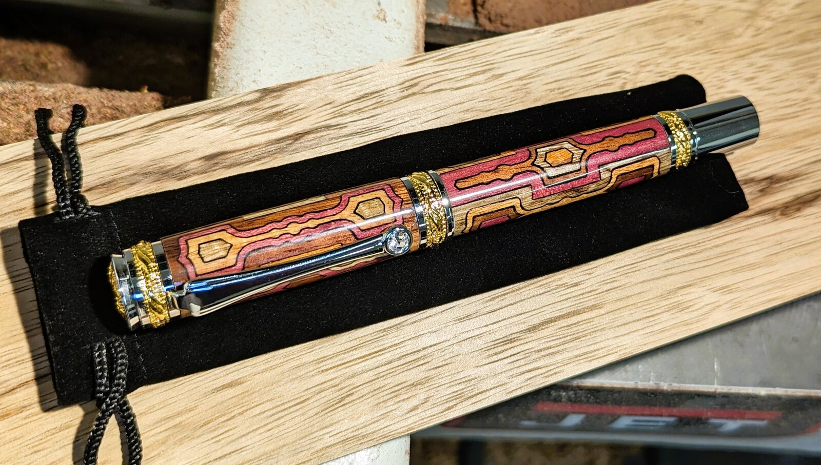 Just finished another segmented rollerball pen, using my laser for cutting the components. I don't know, maybe it's too busy? Too many woods? I used Hawaiian Koa, Black Limba, Purpleheart and Canarywood. I'm on the fence with this one... It's very similar to one I posted in the blank making / segmenting forum, but I added a species and a few little round bits.