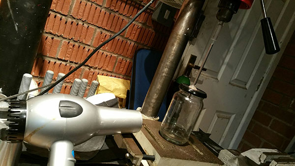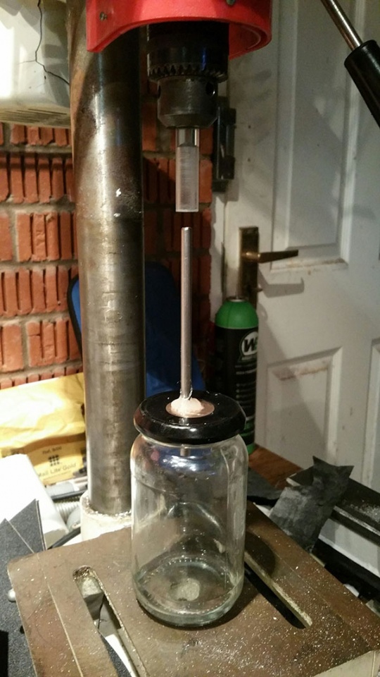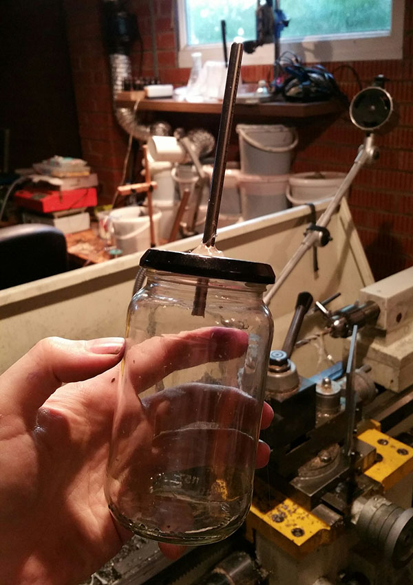 The next step was to build the high tech apparatus. A jam jar with a piece of stainless tube hot glued through the lid.