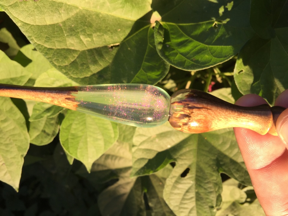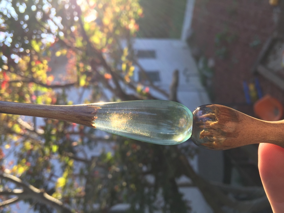 I would think that during the casting, some resin would flow into the splits in the wood and would compensate for any weakening ... especially if the resin cures under vacuum (or perhaps even in a pressure pot)