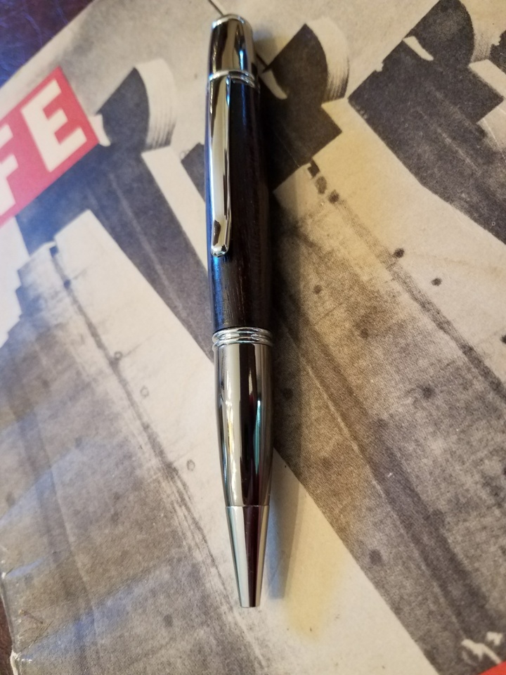 Turned the pen and put just one coat of ca on. The grain is not filled up to give the wood more of a wood look.