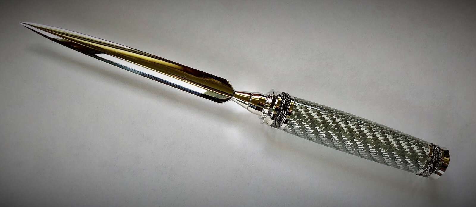 The last is a majestic letter opener I made a while ago for my wife. She needed one at work and I had this set laying around so I decided to use a small piece of the silver carbon fiber that I make Jr. sets from to compliment the metal accents. I thought I shared it already but couldn't find the post.