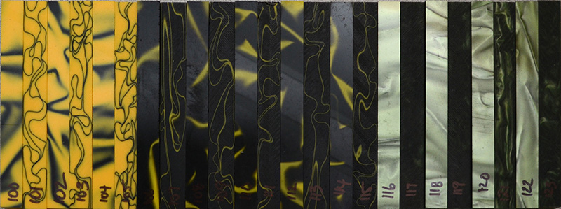 100-156 all acrylic; all measure approximately 5/8" x 5-1/4".