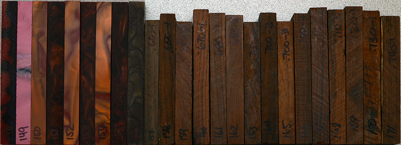 157-173 are Desert Ironwood. The decimal number marked on the top of the blank is the diameter of the shortest side. These are all approximately 5" long.
