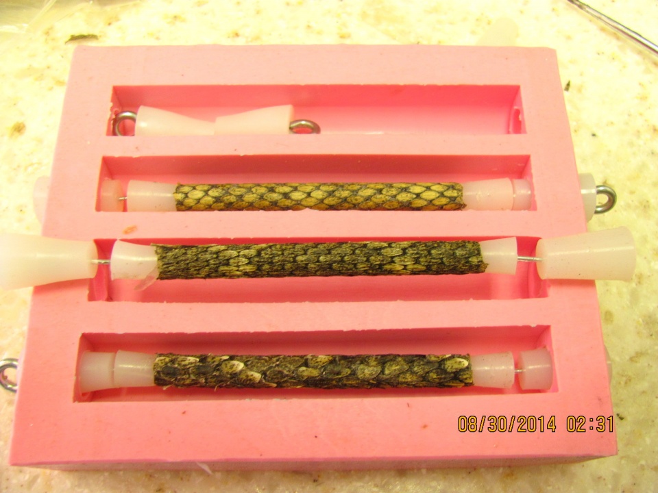 I was asked to make blanks and there are no molds for them. I was asked to make blanks for the 7mm letter opener. The tube is much longer than the 7mm slimline. Here is a picture of my solution. I used the mold for the long clicker and a little ingenuity and creativity. I'll post pictures of the blanks when they come out of the toaster oven.