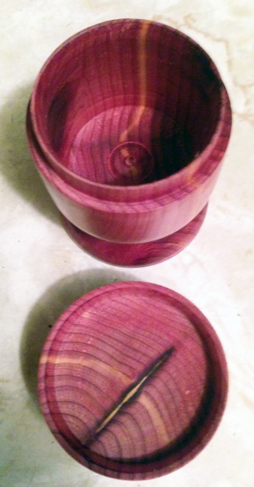 IVO the noted deficiency in the "fit", (:tongue: perfectly fine for one at your early stage of lidded box turning.) you can learn to compensate by making a "pop" sound with your mouth/throat, every time the lid is pulled off. You could even take it a step further, and teach your granddaughter to do it also :eek:. If she asks why, just ask her to not tell anyone, but that gandpa just needs her to do that.:redface: