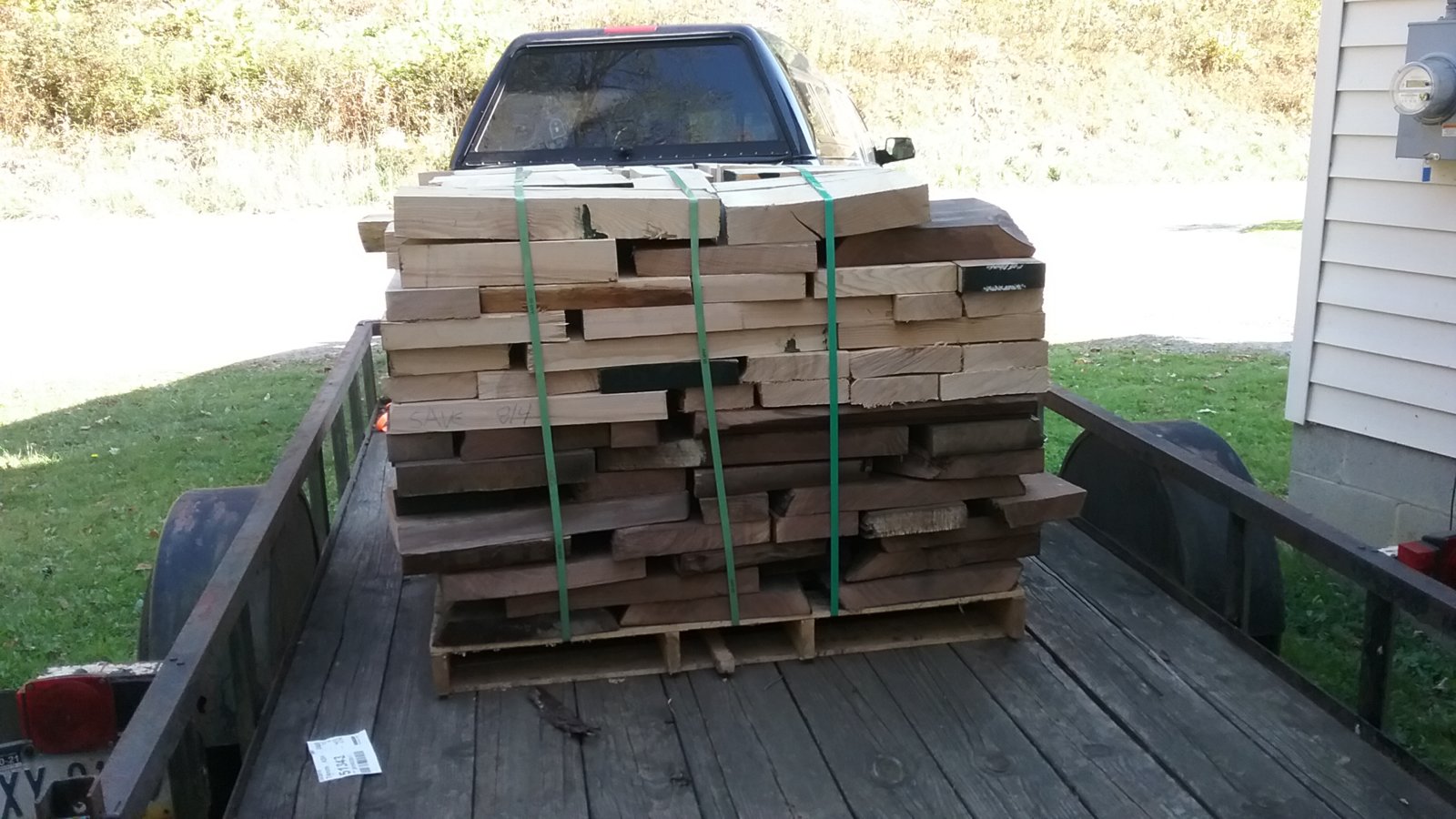 Sorry about the brag but I couldn't help myself. I stopped at a local lumber mill to pick up some kiln dried red oak boards while loading the lumber I ask if they ever sold any split or short lumber. The guy loading me said yes what are you looking for I told him anything in 8/4 so he came back with this pallet of kiln dried cut off's of walnut and ash. he told me it weigh about 1000 pounds! Looks like I have a lot of turning to do this winter.