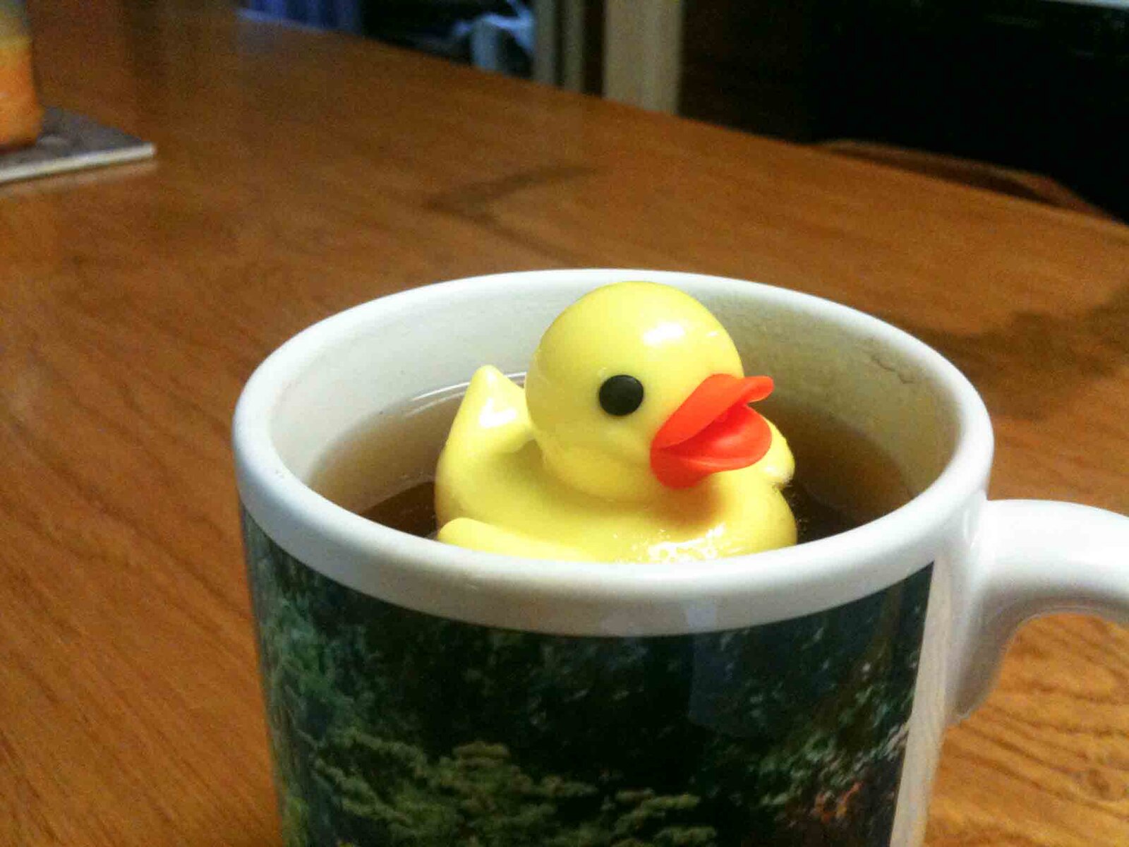 Good guess! I drink and enjoy both. Below is a photo of my 12 ounce tea mug with the ducky tea strainer my daughter gave me almost 20 years ago.