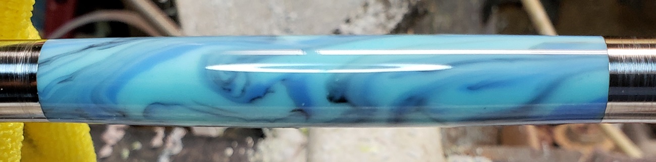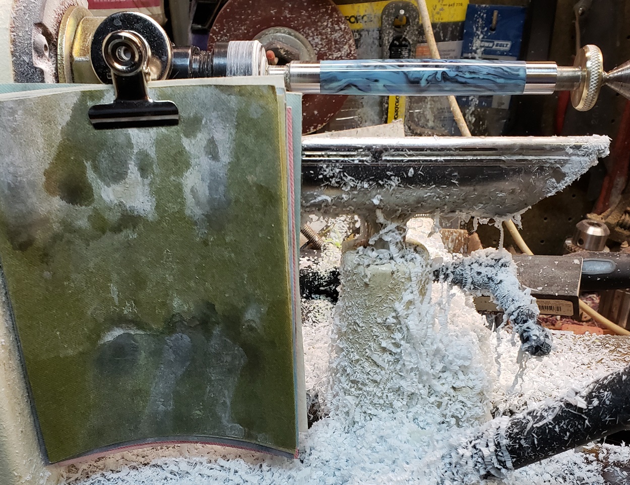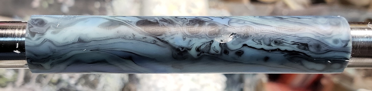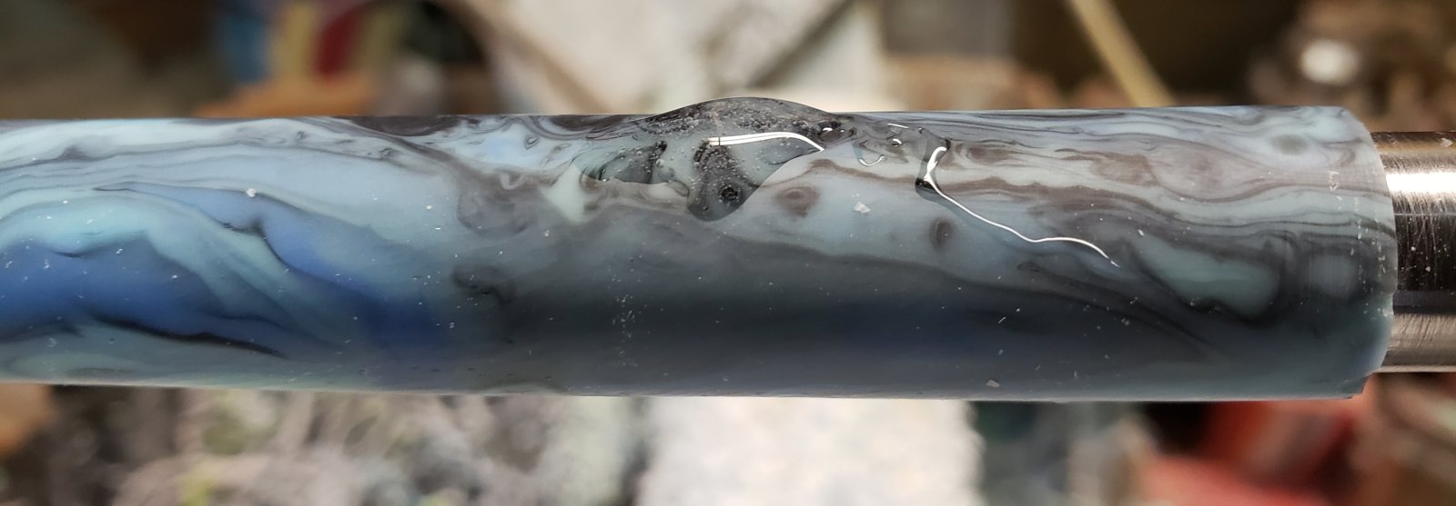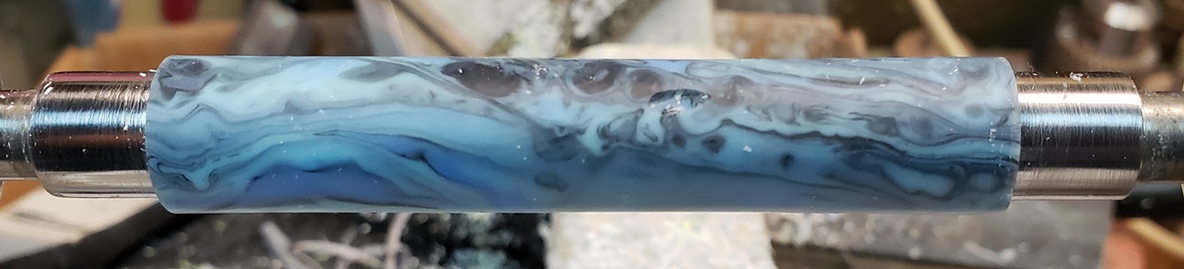 I hate hate HATE turning polyester resin, inlace acrylester, etc. blanks. But every once in a while, I feel the overwhelming urge to punish myself. And I'll admit, this is better than smacking myself in the face with a saucepan. But only just. I tried several different gouges, and three different carbide cutters, including a negative rake. I ended up getting the best results with the flat R2. I've tried the negative rake cutter several times, and it just doesn't blow my skirt up. I don't see what all the hoopla is about.