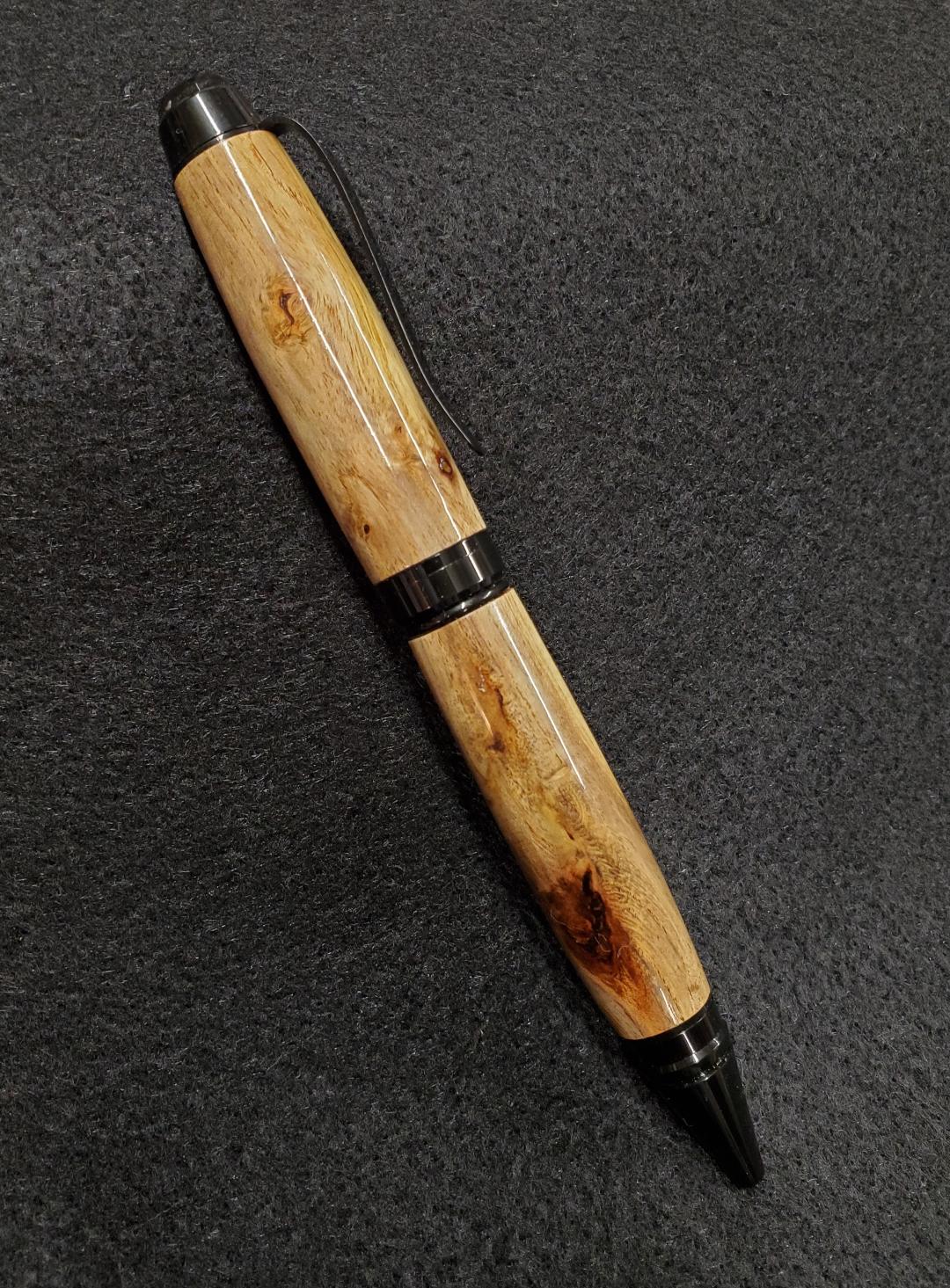 Well it's really not stealing unless I cut it from a live tree. I drive around to oil rigs all day and when I have the time, I check out the sides of the lease roads for mesquite branches that have been cleared for the road. Most are rotted or have cracks in them that are unusable. I found a piece about 3 weeks ago that looked like I may be able to use. Cut off the cracked ends and started squaring the piece. It turned out that I was able to salvage one pen blank from it. Love this West Tx mesquite wood. Pen has a CA finish.