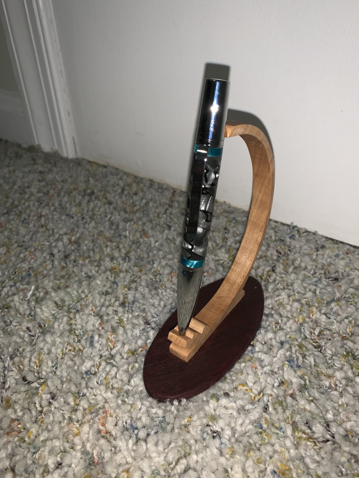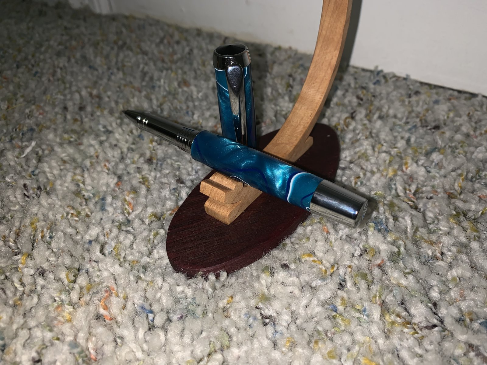 The second is my first attempt at segmenting. A Bella twist. The main blank is some of the vintage French cellulose acetate. The teal bands are teal pearl kirinite.