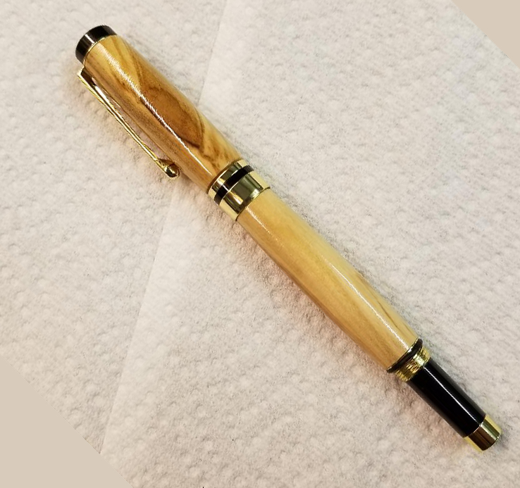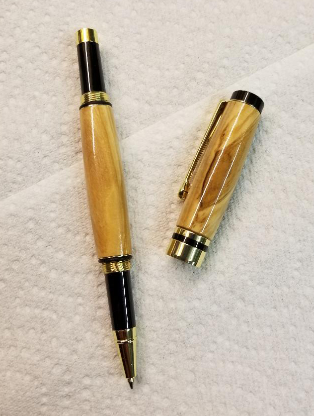 There was only one blank of this wood in a box of wood I got. I have no clue what it is. I just had a feeling that it was going to turn and look nice. Thought it would look good on a larger pen also so I chose this Classic Rollerball for it's mate. Lol