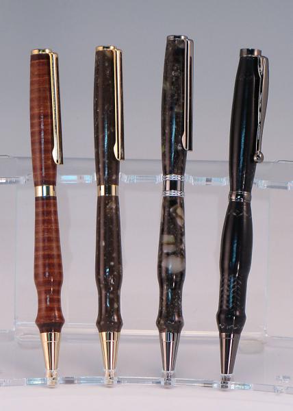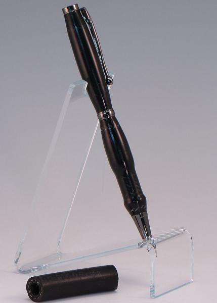 Made it out of hose that is. A short piece of my black air hose. Need I say that it doesn't turn well. Worse then any punky wood I have ever turned. All the pens except the Corian including the hose(ed) one are finished with CA. The Corian pens were finished with Hut plastic polish and one was done with Triple E. I did the one in Triple E to see if there would be any difference. I have since forgotten which one it was and can't tell by looking at them so I guess it doesn't matter which I use on plastics.