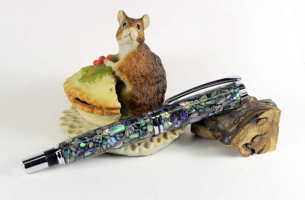 Nice work Peter. I have done a couple of these type pens and they are truely time consuming in the respect that you need to try to find the right pieces to shape the barrel. Not an easy thing to do. I think next time I am going to use the smallest size of those. Also I tried taking a photo and just could not get it to really show off the colors well. Was going to try outdoors but never got around to it. You did a great job with yours and the photo is real nice. Thanks for showing.