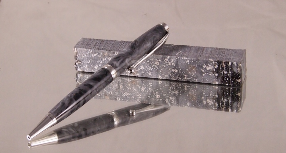 So real ammo projects and sweet gum ball pods were not enough, so I decided to try my hand at casting a blank using HF's powder coating. I stirred and stirred and stirred and thought that I was going to have lumps of unmixed powder. I also used too much black and started blending the colors too quickly to get the effect that I was shooting for. The brick looked awful and I thought about chunking it but decided to turn a comfort pen for the heck of it.