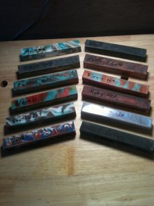 These are the beautiful pen blanks I received with the $50 gift certificate from KnB Polymers. A great big thank you to Brian & Kathy for these. I am looking forward to turning them in the very near future.