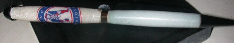 I mentioned to a guy at work when I got hired a year ago that I make pens. I made a few for the other staff members, so I thought it was time to make him one. So I asked him what football team he liked.. The bottom blank actually glows in the dark.. I know the top doesn't really matched. I turned it to slimline bushings and used a creekline kit from Smitty. I think it kind of resembles the guys hat..