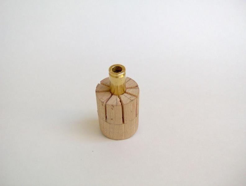 When I first started making rifle cartridge pens, I used homemade wood collets in a scroll chuck to grip the case and bullet when drilling. They worked, but not nearly as well as steel collets in a Beall chuck.