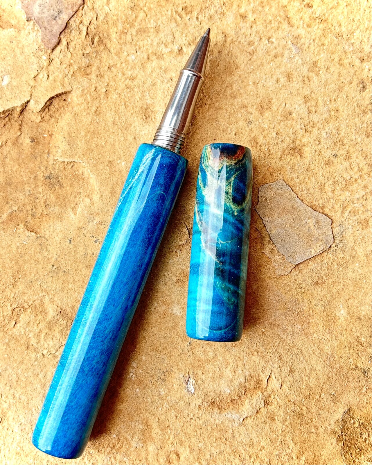 Also, this is an Apollo roller ball in stainless steel from Bullseye Turning Supplies, I'm always a fan of their rollerballs and fountains (even though I'm learning kitless now) The blank is also from Bullseye Turning Supplies, dyed flame box elder…I'm a fan.