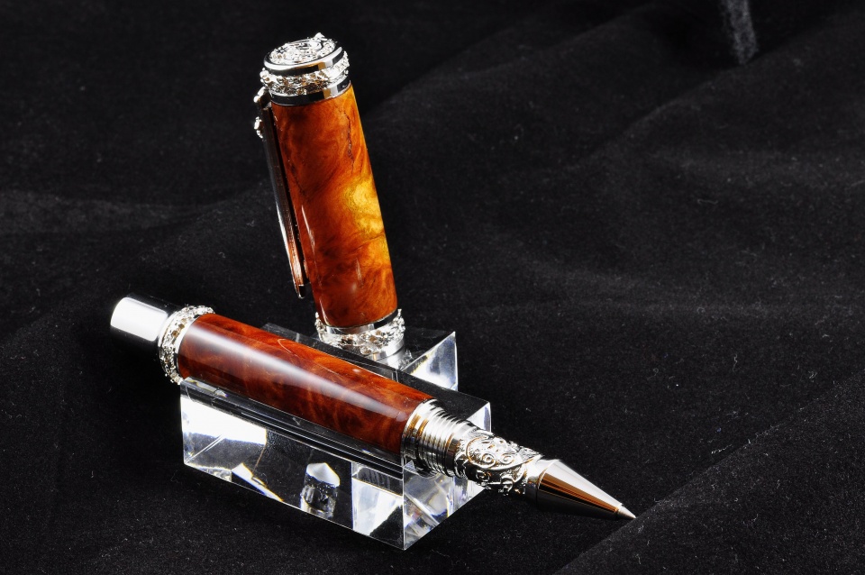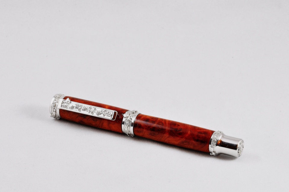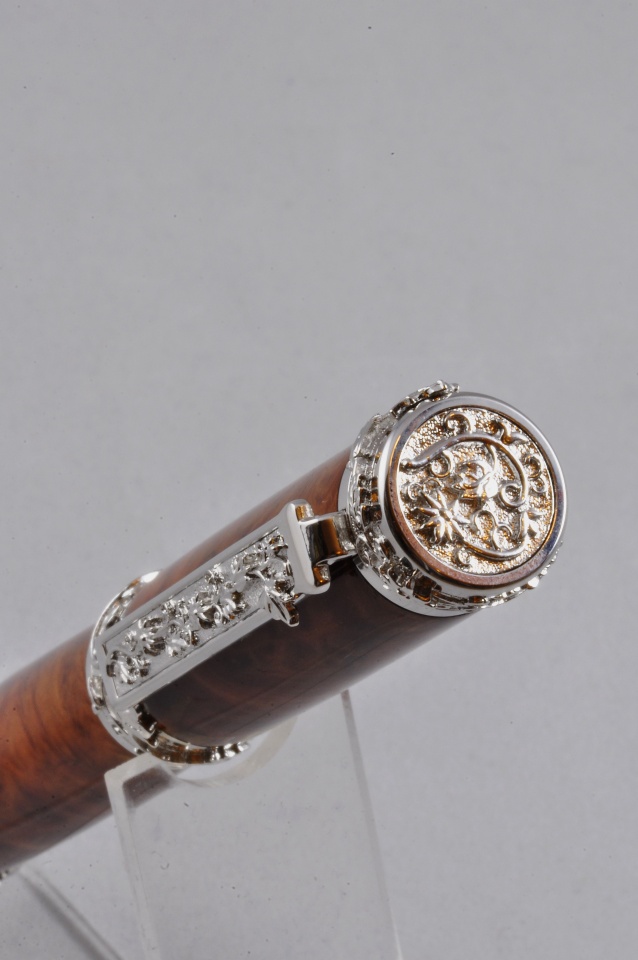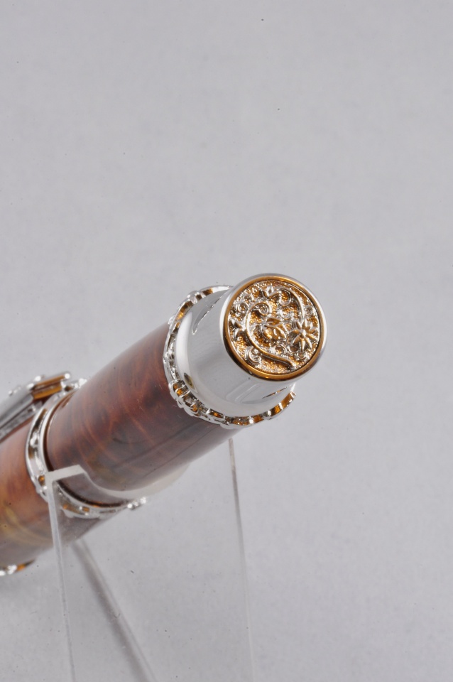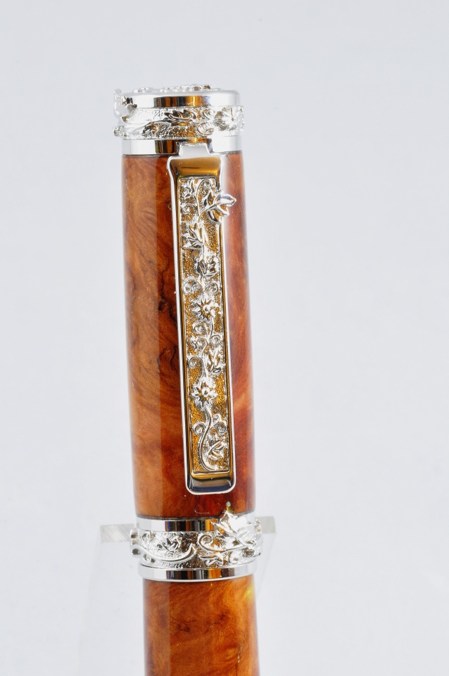 I have been looking forward to trying to do a high end pen and Christmas Eve seemed like the day to give it a go. Four hours of sanding and finishing went into this. Great Palace Vine with Amboyna burl. Comments welcome. (excuse the photography please)
