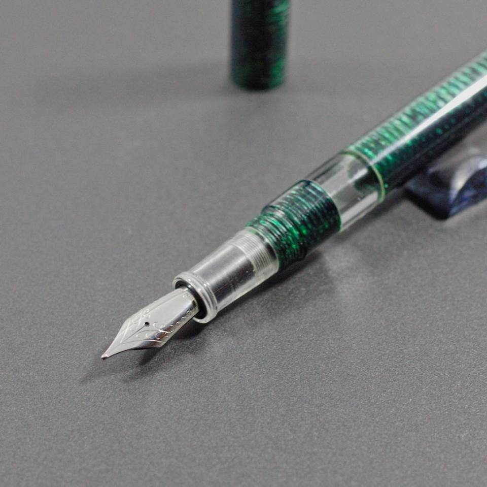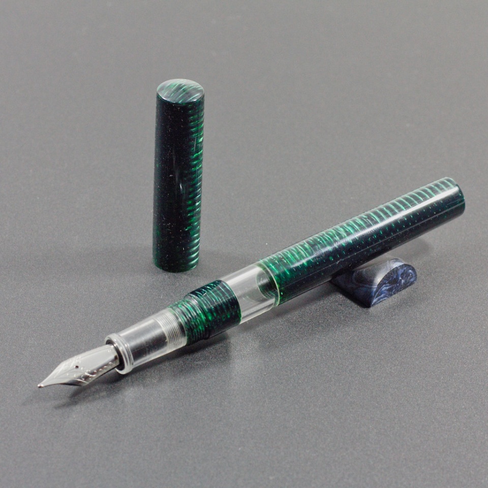 Clear acrylic ink window and the same clear acrylic for the grip section. I'm happy with the way it turned out.