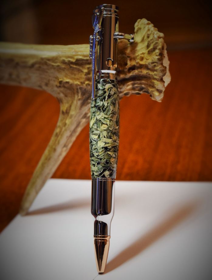 Overall, I'm very happy with how it turned out. It took me about three times longer than normal to turn the blank. Hanna will be ecstatic. She wanted a "money pen" really bad, but I told her I couldn't turn acrylester. Do I feel a sense of satisfaction and accomplishment? Most definitely. Do I like how the pen looks? Obviously. Would I turn another money blank? Hell no! LOL