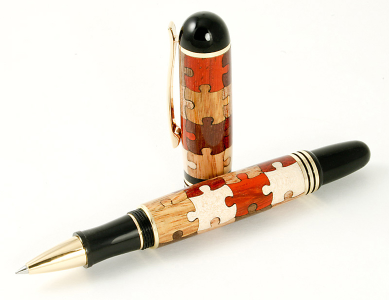 This is the Inlay Puzzle Pen from Woodcraft with a Gold Churchill Rollerball.