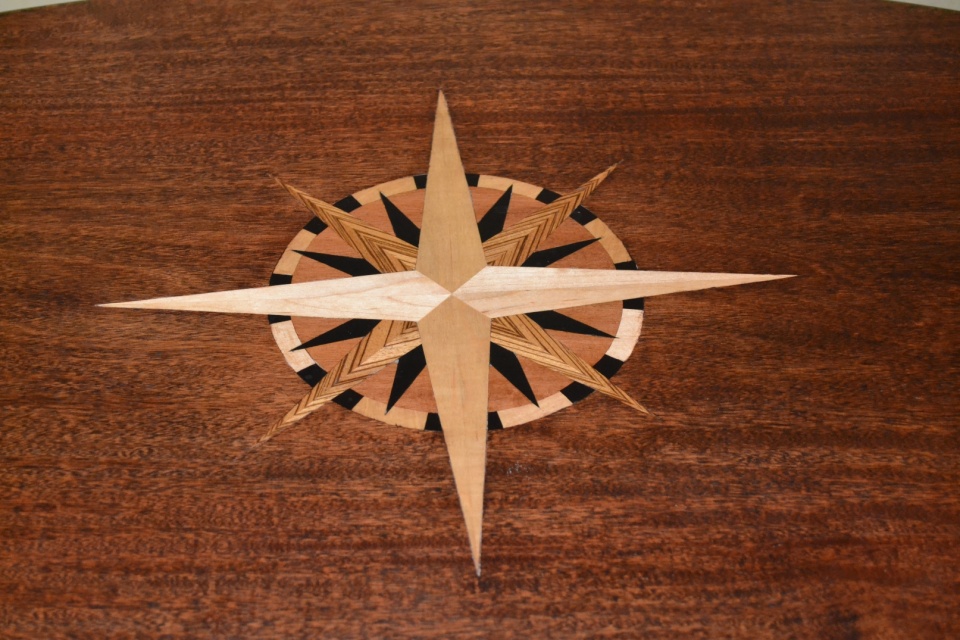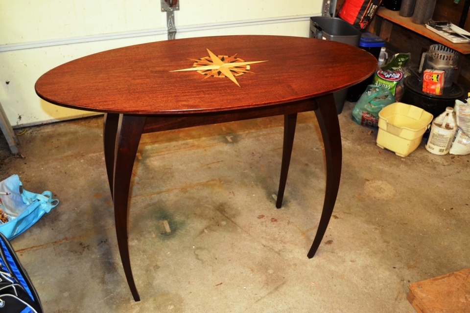 This table was a long-term adventure but the outcome is very nice. This is my first attempt at inlaying and with the inlay itself measuring 18" x 18" was quite the challenge. I was given the legs by a friend of mine that wondered if I could do anything with them. The legs are Santos Mahogany so I ordered some boards of 5/4 Santos Mahogany and set to making the apron and skirt as well as the table top.