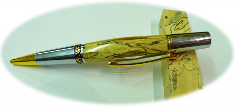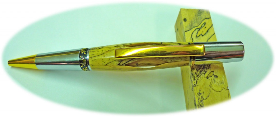 This is my last inside out turning for a pen barrel. I used Spalted Tamarin for the inside tube and also for the outside of the barrel. It is on an Aero Ballpoint.
